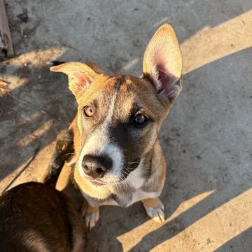 Hi! I'm Perla, a lovable 1-year-old female Pitbull/Collie mix, and I'm in search for my forever home. About me: